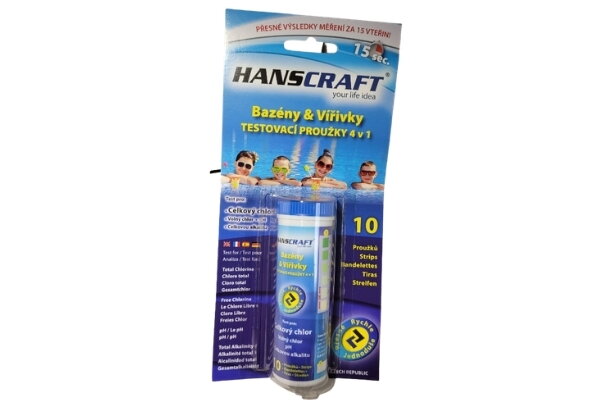 TESTOVACÍ PRÚŽOK PRE BAZÉNY A SPA 4v1 (10 ks)Testovacie prúžky sa používajú na testovanie pH, chlóru, zásaditosti a brómu. V prípade potreby sa najprv upraví pH (hodnoty 6,9 - 7,4), poto